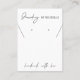 Tarjeta de visualización de joyería minimalista con fuentes de escritura de moda y fondo minimalista en blanco y negro. Este moderno diseño de tarjeta de portajoyería tiene dos corredores de anillo / collar - por favor tenga en cuenta que estos son sólo marcadores y no están prepuntados, puede mantener / eliminar los marcadores que necesita. Añada el logotipo de su negocio y los detalles en la parte posterior y tendrá sus tarjetas de presentación de joyería personalizado para sus pendientes artesanales, sus collares e incluso sus pulseras.