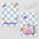 Tarjetas de visualización de joyas retro de moda con fuente groovy y fondo color azul pastel a cuadros. Este moderno diseño de tarjeta de portador de pendientes y collares tiene dos orificios y correas de collar - por favor, tenga en cuenta que son solamente marcadores y no están prepuntados, puede mantener/quitar los marcadores que necesita. Añade tu logotipo y detalles de negocio en la parte posterior y haz tus tarjetas de presentación de joyería personalizado. Con un diseño retro y nostálgicos colores rosa y azul, perfecto para tu joyería artesanal.