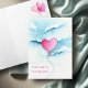 Celebra el amor con estas adorables tarjetas del Día de San Valentín, perfectas para cualquier relación especial. Con un globo aerostático en forma de corazón de acuarela flotando en un cielo azul, estas tarjetas son ideales para tu esposo, novio o incluso una nueva relación. La elegante frase "Estás en mi corazón" en tipografía serif rosa, añade un toque sincero.