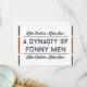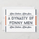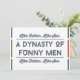Esta divertida tarjeta del día del padre en rojo y azul con la cita "De tal padre, tal hijo. Una dinastía de hombres divertidos" es perfecta para tu hijo en el día del padre. Esta tarjeta de tipografía moderna está diseñada para recordarle a tu hijo de dónde viene su sentido del humor, en este hermoso día que honra a todos los padres alrededor del mundo. ¡Feliz día del padre!