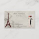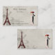 Tarjetas de visita que ofrecen un ilustracion del vintage de la torre Eiffel en un fondo floral retro.