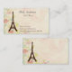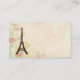 Tarjetas de visita que ofrecen un ilustracion del vintage de la torre Eiffel en un fondo floral retro.