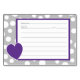 Patrón divertido de polka-dot en gris y morado oscuro con tarjetas de recetas impresas en el corazón para complementar a nuestro encuadernador. Cambiar el color de fondo del gris a cualquier color.