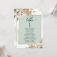 Ayude a sus huéspedes a encontrar su mesa con estas elegantes y modernas tarjetas con nombres de invitados. Tarjetas de doble cara para que los huéspedes puedan ver sus nombres desde ambos lados, delante o detrás. Utilice clips o taladro para las pantallas colgantes, o agregue al soporte/marcos de la tabla. Diseño con un elegante marco verde salado con hermosos ramos de acuarela en rosa polvoriento, terracota, óxido, verde y un toque de azul y delicadas manchas de color verde salado en cascada detrás del marco. Detalles modernos de caligrafía escrita a mano. Parte de nuestra colección "Earthy Blooms in Sage Green and Terracotta" con una variedad de productos de coordinación disponibles, incluyendo tarjetas de número de tabla y menús.