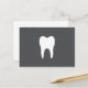 Tarjetas modernas, sencillas pero elegantes, con una silueta de dientes blancos sobre un fondo gris oscuro. También puedes subir tu propio logotipo. Texto de Personalizable en la parte posterior. Campos de plantilla para el nombre del dentista, hora y fecha de la cita e información de contacto.