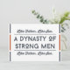 Esta divertida tarjeta del día del padre en rojo y azul con la cita "De tal padre, tal hijo. Una dinastía de hombres fuertes" es perfecta para tu hijo en el día del padre. Esta tarjeta de tipografía moderna está diseñada para recordarle a tu hijo de dónde viene su fuerza, en este hermoso día que honra a todos los padres alrededor del mundo. ¡Feliz día del padre!