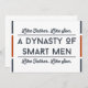 Esta divertida tarjeta del día del padre en rojo y azul con la cita "De tal padre, tal hijo. Una dinastía de hombres inteligentes" es perfecta para tu hijo en el día del padre. Esta tarjeta de tipografía moderna está diseñada para recordar a tu hijo de dónde viene su inteligencia, en este hermoso día que honra a todos los padres alrededor del mundo. ¡Feliz día del padre!