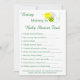 Tarjetas divertidas para el juego de la discordia de baby shower con una simpática abeja - imprimible. Personaliza a la futura mamá. Respuestas: 1-Pampers, 2-Plátano, 3-Rin-Ran-Bebe, 4-Humpty Dumpty, 5-Pañales, 6-Cambiar pañales, 7-Sonajero, 8-Cantar, 9-Cuna, 10-Dormir. Para premios y otros juegos coincidentes, visite https://www.zazzle.com/collections/baby_shower_games_and_prizes-119350060606703707