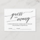 Estas elegantes tarjetas de caligrafía para adivinar cuántos besos son una actividad divertida para una sencilla despedida de soltera. Llena un frasco con besos de Hersey y haz que tus invitados adivinen cuántas golosinas hay en el frasco. La respuesta más cercana gana un premio. El diseño neutral presenta una tarjeta de juego minimalista decorada con tipografía romántica y caprichosa.