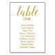 Guíe a sus huéspedes hasta su mesa con estas elegantes tarjetas de boda de texto de color dorado. Personalice el número de tabla y el nombre del invitado.