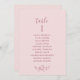 Ayude a sus huéspedes a encontrar su mesa con estas elegantes tarjetas del plan de asiento con los nombres de los invitados. Tarjetas de doble cara para que los huéspedes puedan ver sus nombres desde ambos lados, delante y detrás. Espacio despejado alrededor que le da la libertad de usar clips o agujeros de perforación para las pantallas colgantes, o usar un soporte de mesa/marco. Diseño de tarjeta rosa con texto en burdeos, delicado detalle floral a mano en tonos burdeos y rosas, y detalles caligráficos manuscritos. Varias opciones de color. Tener todos los números de tabla en el mismo color o mezclar colores según el tema de color del evento. Parte de una colección con una variedad de productos de coordinación disponibles, incluyendo tarjetas de número de tabla y menús.