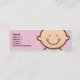 ¡Esta tarjeta flaca linda del perfil es el accesorio social perfecto para usted y su niño! Su tamaño delgado remete fácilmente lejos la su bolsa de pañales, la mochila del niño o el monedero. El ideal para compartir el Info de su niño al arreglar el juego fecha, los sleepovers, o apenas fabricación de nuevos amigos. Estas tarjetas lindas ofrecen un ilustracion caprichoso de la cara de un bebé delante de un fondo rosado. Y el mejor de todos, cada tarjeta del perfil es completamente adaptable. ¡Comience a personalizar ahora!