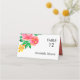 Flores rosadas vibrantes, brotes amarillos y hojas verdes acuarela diseño con números de mesa y nombres de invitados individuales en estas tarjetas plegadas. **NOTA: Crea individualmente una tarjeta de lugar para cada huésped y agrega cada uno a tu tarjeta de compra (no se puede crear al por mayor). Los nombres de la pareja boda en el reverso. COINCIDIENDO elementos de nuestra colección.