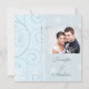 Invitaciones fotográficas Bodas de vacaciones de invierno en azul y blanco clásico con elegante diseño de copos de nieve y remolinos, Personalizable con los detalles de su boda, sus nombres y su propia foto. Disponible en sellos de vacaciones de invierno, sobres, etiquetas y tarjetas. Perfecto para un invierno o un boda Navidad.