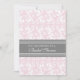 Las invitaciones a la ducha de novias en elegantes tonos rosa pastel rosa claro, gris y blanco clásico de adamascado floral adamascado, moda y femenino, personalizable con los detalles de la ducha. También disponible en tarjetas de agradecimiento e invitaciones para la fiesta nupcial.