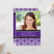 Invitaciones a la plantilla de fotos personalizado de novias en elegante color morado oscuro, negro y blanco clásico de damasco floral, elegante y femenino, personalizable con los detalles de la ducha. También disponible en tarjetas de agradecimiento e invitaciones para la fiesta nupcial.