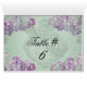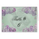 Presente las tarjetas del número que usted puede añadir fácilmente sus números de la tabla antes a ordenar. Si usted da vuelta a esta tarjeta al revés y refold usted tiene la imagen completa a ambos lados de la tarjeta. Estas tarjetas bonitas del número de la tabla tienen nuestro diseño de la boda del Locket de las lilas del vintage el ofrecer de lilas bonitas en un fondo azul del mar silenciado con los pájaros, y áreas que usted puede modificar para requisitos particulares fácilmente.