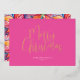Estas tarjetas de Navidades rosados de moda muestran las palabras "Feliz Navidad" en la elegante tipografía de escritura de Relieve metalizado dorado. La tarjeta se revierte a un patrón floral único y colorido de color poinsettia con tu foto. Utilice los campos de plantilla para agregar su personalización. Una elección única y brillante para sus tarjetas de felicitación de vacaciones pinkmas. Para ver el tema fiesta de los Navidades a juego visita https://www.zazzle.com/collections/unique_christmas_cards_invitations_wrapping_paper-119501723387216239 Arte acuático original de Victoria Grigaliunas de Do Tell A Belle.