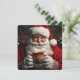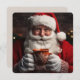 Esta tarjeta de saludo de los Navidades presenta a alegre Santa Claus sonriendo con una taza de vacaciones durante los Navidades. La parte posterior está en blanco y el color crema para incluir un saludo.