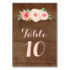 Tarjetas de números de mesa antiguas y elegantes en flores de color agua rosa negro con un patrón de fondo de madera. Personalizar estas tarjetas con los números de su tabla para una adición especial a las tablas de su boda. También para fiestas de cumpleaños y aniversario.