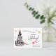 Tarjeta de paz de Felices Fiestas con diseño abstracto de árbol de Navidad que dice, "La paz comienza conmigo y tú" con diseño negro, rojo y dorado.