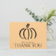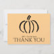 Estas tarjetas de agradecimiento con tema otoñal (planas, no plegables) son perfectas para eventos de otoño, ya sea Halloween, Día de Acción de Gracias o bodas. Destacan un dibujo minimalista moderno de una calabaza sobre un fondo naranja cálido pero sutil (color hexadecimal ffcd8c). Para agregar o eliminar líneas de texto, use la función de personalización. Personalice con su nombre.