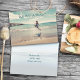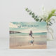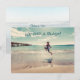 Tarjetas planas de agradecimiento con tema de playa. Personalice el texto 'Nos lo pasamos genial' en la parte frontal que se imprime sobre un niño corriendo por una playa. La foto se puede reemplazar si tiene una propia que funcione mejor. En la parte trasera, el texto dice 'gracias por la hospitalidad' y también se imprime sobre una escena de playa. Un par de tamaños funcionarán para esta tarjeta, pero no todos.