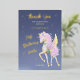 Tarjetas de "Agradecimiento" planas para tu primer cumpleaños, con una imagen de un unicornio suave con alas.
