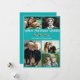 Tarjeta fotográfica familiar de tonos de Navidades tropicales verde azulados con un lugar para cinco fotografías. Navidades cálidos Deseos con estrellas y diseño holly. Fotos familiares de cuadros azul verde azulado oscuro con un color verde azulado más claro al reverso.
