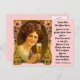 Tarjeta postal de estilo vintage con una hermosa dama brindando con champán ~ vino que combina con un gran y viejo brindis de Año Nuevo. Ofrezco este diseño muy popular con varios colores de fondo diferentes.. aquí hay un fondo rosa con texto blanco! La parte trasera de esta tarjeta postal tiene un fondo tonificado a juego. Al usar la opción PERSONALIZAR, puede hacer cambios adicionales a esta tarjeta postal, como agregar texto adicional en la parte trasera y/o delantera. ¡Disfruta la vida y gracias por pasar!