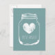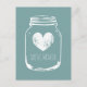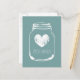 Tarjetas postales personalizadas de mudanza con frasco de mason rústico. Texto de mudanza personalizado; ¡Nos hemos mudado! Agregue su nueva dirección en la parte posterior. Lindas tarjetas de cambio de dirección para nuevo hogar o ubicación comercial. Diseño antiguo vintage con icono de corazón desvanecido y desgastado. Tipografía manuscrita. Azul turquesa o color personalizado.