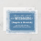 tarjetas postales azules vintage para guardar la fecha para la próxima boda. Estas tarjetas le permiten notificar a sus invitados con anticipación antes de enviar las invitaciones formales de boda.