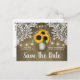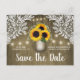 Tarjetas Postales de Ahorro de Fecha con Jarrón de Mason Girasoles Rústicos - cuentan con un fondo único de madera de granero con encaje elegante y luces de cuerda brillantes. Este diseño también cuenta con un jarrón de mason lleno de girasoles y aliento de bebé. El jarrón de mason está decorado con iniciales que puedes cambiar a las de tu elección.