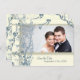 Tarjetas postales personalizadas de anuncio de fecha de boda con patrón floral azul y crema elegante, con estilo y totalmente personalizables con los detalles de su boda y su propia foto. También disponibles en muchos otros productos para la fiesta de boda.