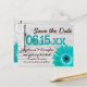 Tarjetas Postales de Ahorro de Fecha de Bodas de Madera de Granero Blanca Deteriorada con Margarita Turquesa. El diseño de madera es de madera blanca con pintura pelada y hay una margarita gerbera azul turquesa en la esquina. Este diseño de estilo rústico campestre está en la parte posterior y delantera de la tarjeta postal. Solo agregue los detalles de su boda, su dirección de devolución y estarán listos para enviar. Estas están diseñadas para coincidir con estas invitaciones de boda campestres: