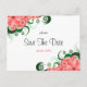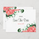 © Sunny Mars Designs - Hibisco Floral: Rosa en tarjetas postales de anuncio de boda personalizadas blancas de Save The Date - Tarjeta postal de anuncio de boda elegante, con clase, trendy, con estilo y diseño de hibisco tropical floral rosa hermoso y bonito.