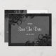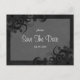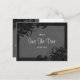 © Sunny Mars Designs - Flor de Hibisco Floral: Negro en tarjetas postales de boda de ahorro de fecha gris oscuro - moderno, elegante, clásico, tendencia, chic personalizable tarjetas postales de boda góticas con hermoso, impresionante diseño floral tropical de hibisco negro.