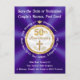 Tarjetas postales baratas pero hermosas para guardar la fecha del 50 aniversario de boda cristiano. 50 diamantes y dorados, con cruz y hermosos remolinos rodeados de rico púrpura real y diseños de purpurina dorada falsa. Usted, o llame a la diseñadora Linda: 239-949-9090 EST puede TRANSFERIR este diseño a invitaciones, eliminar cualquier texto o diseños. Solo la diseñadora Linda puede CAMBIAR los colores a su tema de aniversario de bodas cristiano de 50 años. También puedo diseñar tarjetas postales de guardar la fecha, invitaciones, suministros para fiestas, regalos y más para el 50 aniversario que coincidan y se coordinen. Vea las instrucciones breves a continuación sobre cómo hacer CAMBIOS y transferir el diseño a más de 1000 ideas y productos de aniversario de bodas de 50 años.