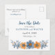Estas tarjetas postales personalizadas impresas son perfectas para tarjetas de "save the date" de bodas. Presentan una ilustración floral de estilo acuarela en tonos suaves y apagados de azul y naranja, lo que las hace perfectas para bodas y eventos especiales de otoño. Utilice los campos de la plantilla para personalizar fácilmente estas tarjetas de respuesta con su información. ¿Necesita incluir más información? Seleccione la opción PERSONALIZAR para agregar texto adicional a estas tarjetas postales.