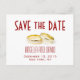 Tarjetas postales modernas y sencillas de anuncio de boda en rojo, blanco y oro con foto de anillos de boda de oro. Personalice con la información de su anuncio de boda. Un diseño hermoso y elegante que utiliza divertidos estilos de letra para el texto combinado con dos anillos de boda de oro amarillo y plata.