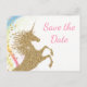 Tarjetas postales de aviso de baby shower de unicornio con hermoso unicornio dorado en un fondo de remolino de arcoíris. Estas tarjetas postales de aviso de baby shower de unicornio se personalizan fácilmente para su evento simplemente agregando sus detalles en el estilo de fuente que prefiera. También puede cambiar el color del fondo. Este es un diseño impreso sin purpurina real.