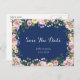 Tarjetas Postales de Aviso de Fecha de Bodas Floral Rosa Clásico Azul Marino