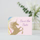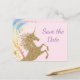 Tarjetas postales de cumpleaños de unicornio save the date con hermoso unicornio dorado en un fondo de remolino de arcoíris. Estas tarjetas postales de save the date de cumpleaños de unicornio se personalizan fácilmente para su evento simplemente agregando sus detalles en el estilo de fuente que prefiera. También puede cambiar el color de fondo. Este es un diseño impreso sin purpurina real.