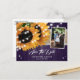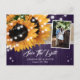 Estas tarjetas postales rústicas de guardar la fecha de la boda con girasoles sobre arpillera y corredor de encaje contra un fondo de madera de granero son ideales para una boda rústica morada inspirada en girasoles.