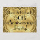 Tarjetas postales de invitación con aspecto vintage decorativas para "Fiesta de aniversario número 50" con texto negro. Fáciles de personalizar con toda la información necesaria en el reverso o simplemente elimine el texto de muestra para escribir a mano más tarde. O cambie el texto del frente para otra ocasión especial, como otros aniversarios, bodas, jubilaciones o invitación de "Guarde la fecha". Tarjetas postales elegantes y clásicas de aspecto lujoso que realmente destacan con estilo para sus invitados.