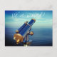 Tarjetas postales de mudanza con foto de vista al océano para nuevo hogar. Texto de mudanza personalizado; ¡Nos hemos mudado! Agregue su nuevo cambio de dirección en el reverso. Tarjetas vintage de nueva casa para reubicación de hogar y negocio. Diseño de imagen de instrumento de telescopio náutico antiguo con tipografía de escritura a mano elegante. También ideal para viaje de luna de miel / boda en destino de playa o resort de vacaciones. Envíe tarjetas de nos hemos mudado a amigos y familiares. Fotografía de paisaje de escena costera desde el muelle con horizonte marino y cielo azul.