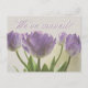 Tarjetas postales de nueva dirección con estampado de tulipanes morados. Texto elegante de mudanza; ¡Nos hemos mudado! Agrega tu nueva dirección en la parte posterior. Tarjetas de mudanza inspiradas en la naturaleza.