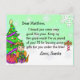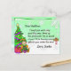 Copos de nieve lindos con fondo verde, con una adorable carta personalizada de Papá Noel en la parte delantera con un simpático elfo festivo. La parte posterior tiene un lugar para que tu hijo escriba su lista de deseos de Navidad.
