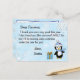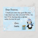 Copos de nieve blancos y azules adorables, con un pingüino festivo adorable y una carta personalizada de Papá Noel en la parte frontal. La parte trasera tiene un lugar para que su hijo escriba su lista de deseos de Navidad.