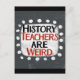 "Los Profesores de Historia Son Raros" es un diseño de texto lindo en gris con texto negro y rojo, junto con una forma de acento blanco y puntos caprichosos texturizados blancos que lo rodean.